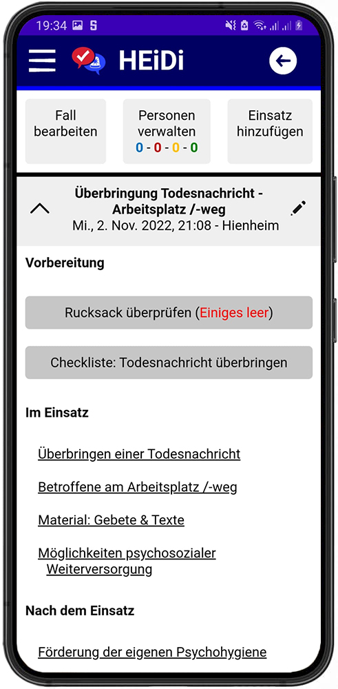 HEiDi ist die kostenlose App für alle, die einsatz-artig arbeiten. Egal ob Feuerwehrfrau, Notarzt, Kriseninterventionshelfer oder Stabsmitarbeiterin: HEiDi hilft dir in allen Aspekten der Vorbereitung, Durchführung und Nachbereitung deiner Einsätze.