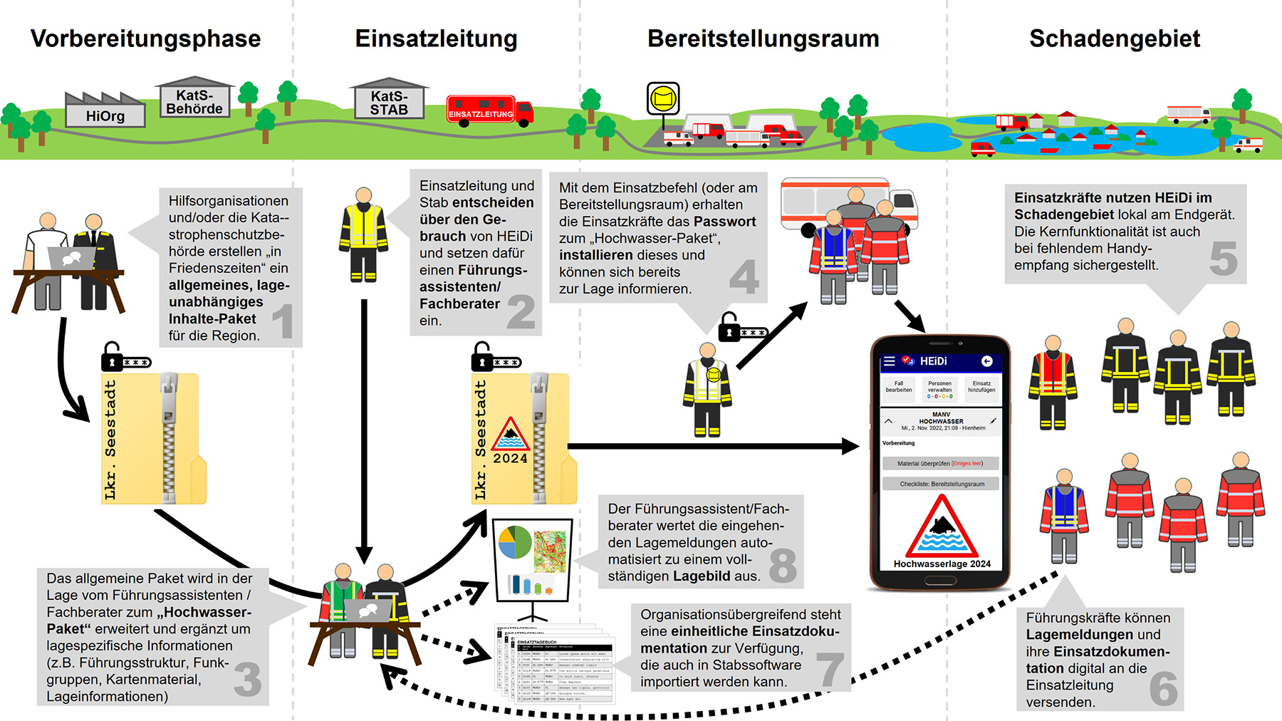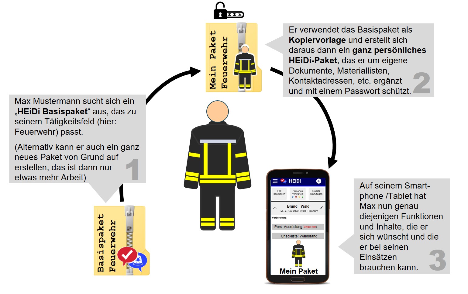 Erstelle ein eigenes HEiDi-Paket (ggf. auf Basis einer Kopiervorlage) und HEiDi-Handbuch für dein Team, damit deine Einsatzkräfte ein digitales Helferlein für ihren Einsatzalltag zur Seite gestellt bekommen!