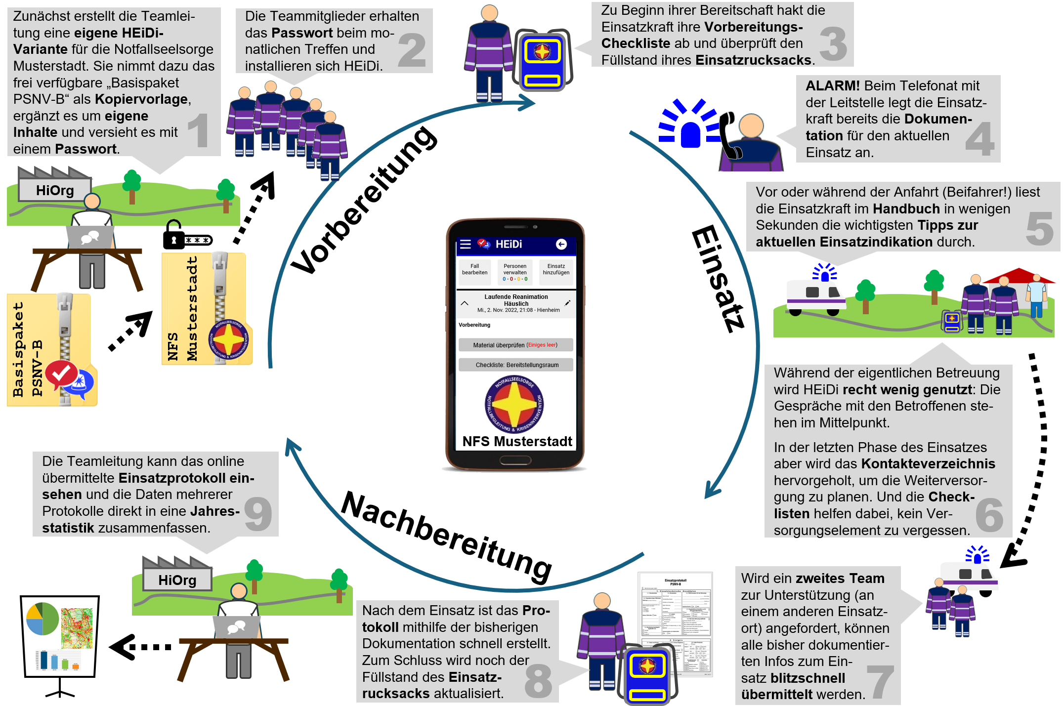 Der Ablauf hier beschrieben am Beispiel eines PSNV-Teams. Klicke auf das Bild, um es zu vergrößern: